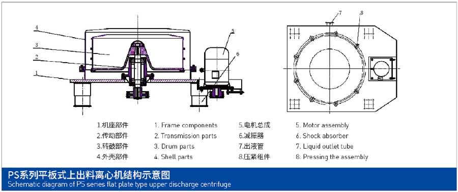 結構與特點 1.采用平板結構、波態隔震裝置,離心機運行更加平穩。 2.采用變頻器控制或手動剎車,啟動平穩,能耗低,分離因數可調 3.結構設計合理,部件過渡滑,表面經拋光處理,有效的清除了衛生死角,外部結構件、緊固件和轉鼓都采用不銹鋼制作。 4.外殼為敞開式,可對離心機外殼與轉鼓夾層空間進行徹底清洗。 5.結構簡單,操作維修方便。 6.通用性強,適用范圍廣 7.密封件采用硅橡膠和氟橡膠。可實現防爆要求,適合于有毒和易燃、易爆場合的應用。8.固體晶粒不易破碎 主要用途 PS型離心機是一種高性能人工上部知料間歇操作的離心過濾設備。適用于粘度大、親水性強、難分離的含中細度的顆粒狀或纖維狀物料的懸浮液進行固、液分離作業,不但適宜小批量多品種的物料分離,也適合大批量生產。廣泛地應用于醫藥化工、礦山、輕工、食品及其它領域。例如:石膏、疏、芒硝、硫酸鐵、硫酸銅、硫酸鎳、氯化鉀、醋酸鈉、硼砂、蘇打、橡膠添加劑、染料、塑料原料、肥皂、油脂、各種樹脂、食鹽、味精、食品添加劑、淀粉制糖、維生素、抗生素、除草劑、銅、鋅、鋁等礦粉脫水。 結構示意圖